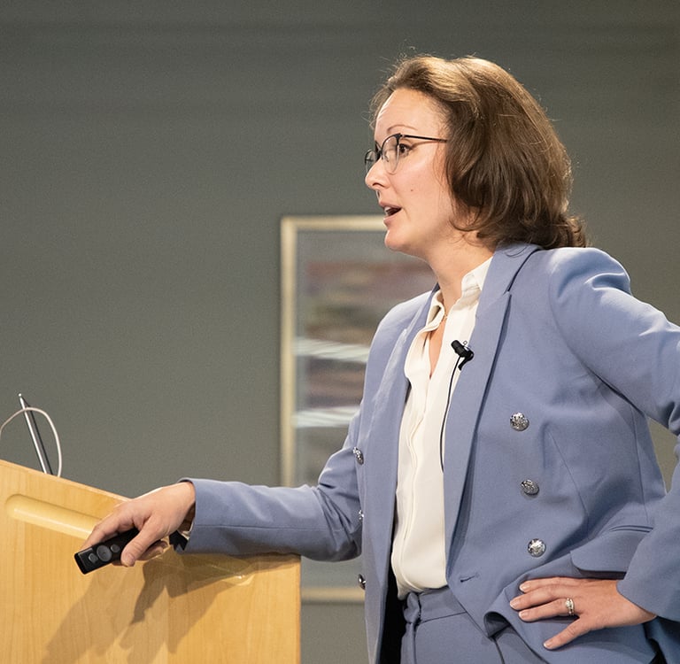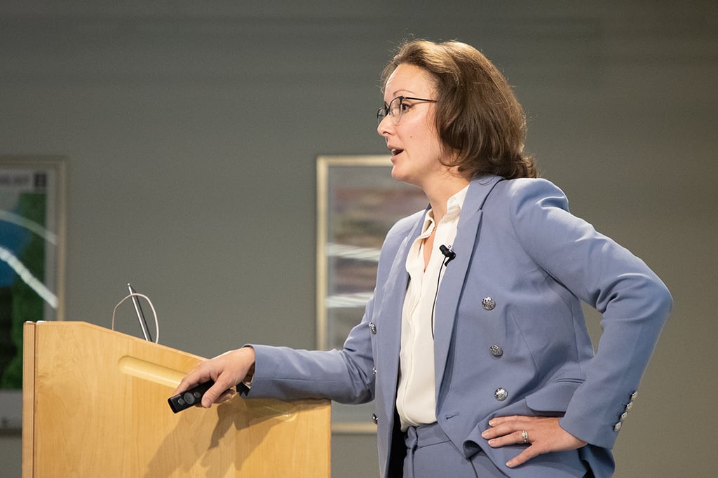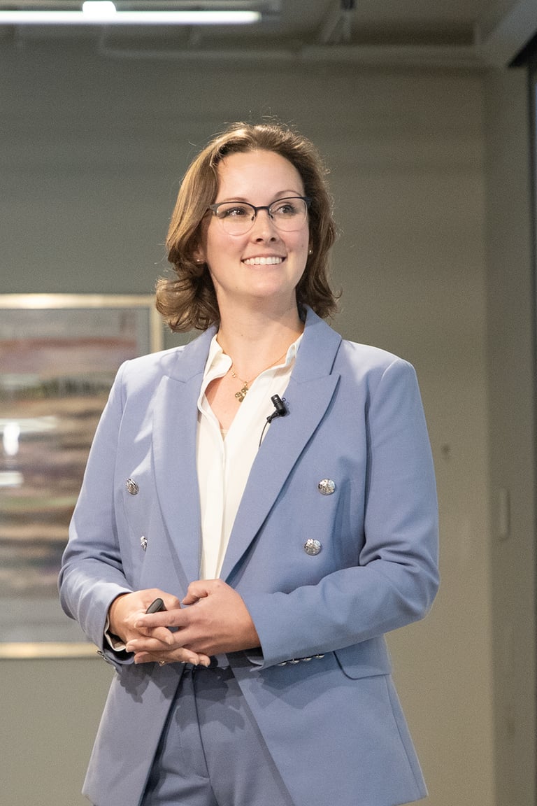 Kelsey Mayo, Armor Medical CEO, presents in MATTER’s final showcase on ways to reduce maternal mortality to key stakeholders